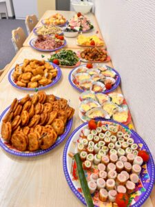 午前中は各事業所でそれぞれクリスマスランチを作り、